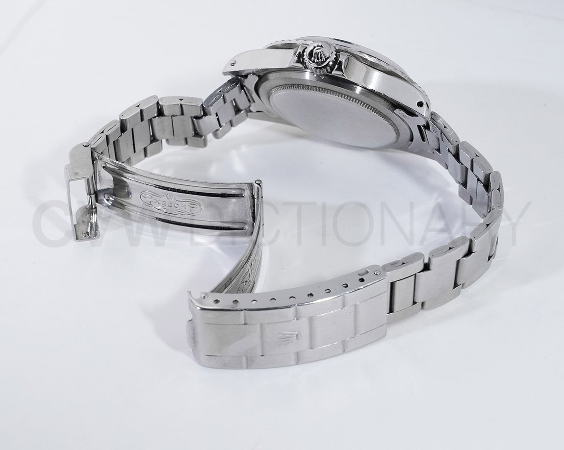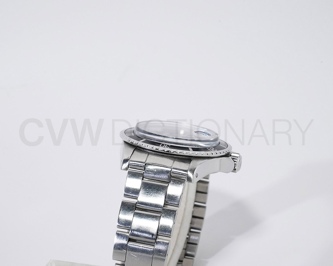 年代相応のスレ、キズがございますが、ケースはしっかりとした個体です。年代の合ったMK4ダイヤルは外周際部分に極僅かな劣化がございますが、全体的に綺麗な状態です。ベゼルは後年に交換されておりますが、価格が魅力的なオススメヴィンテージサブマリーナーです。弊社提携工房にてオーバーホール済みの商品になります。