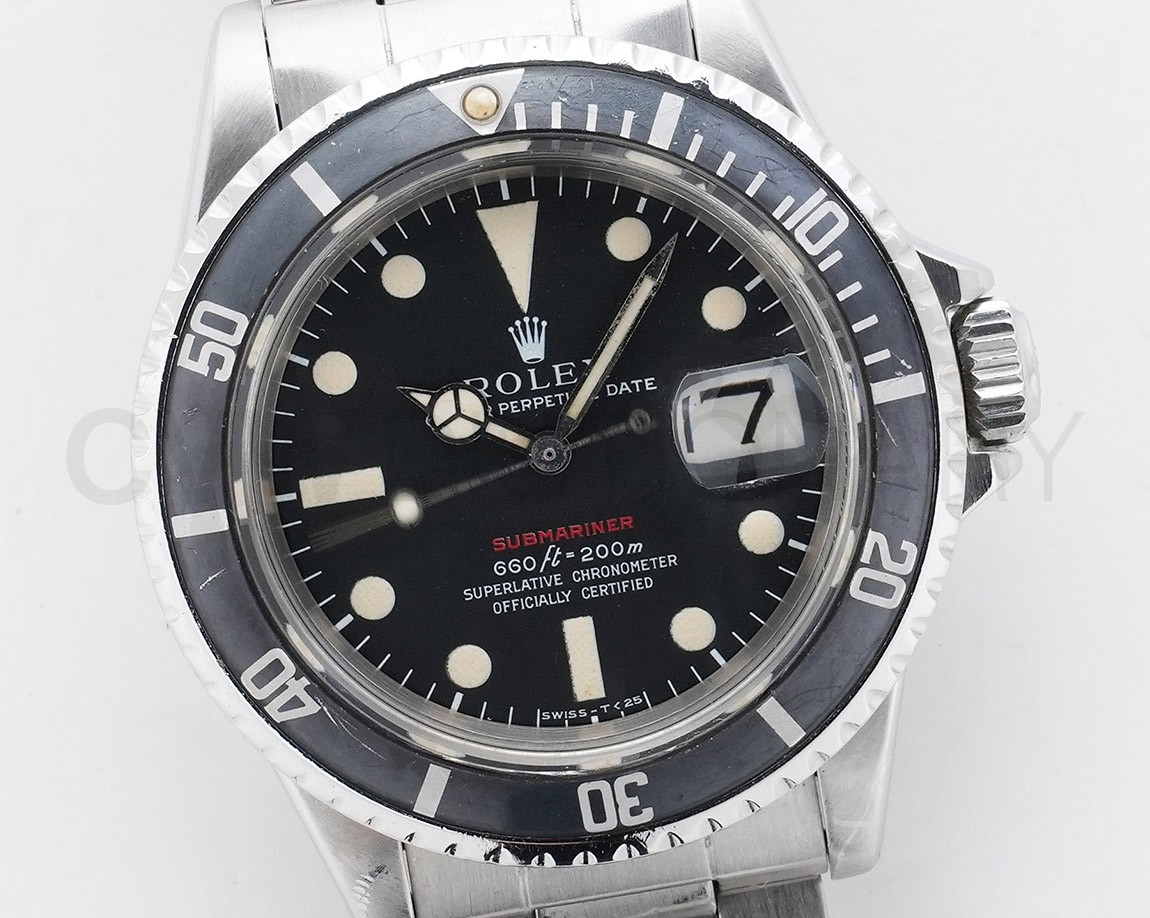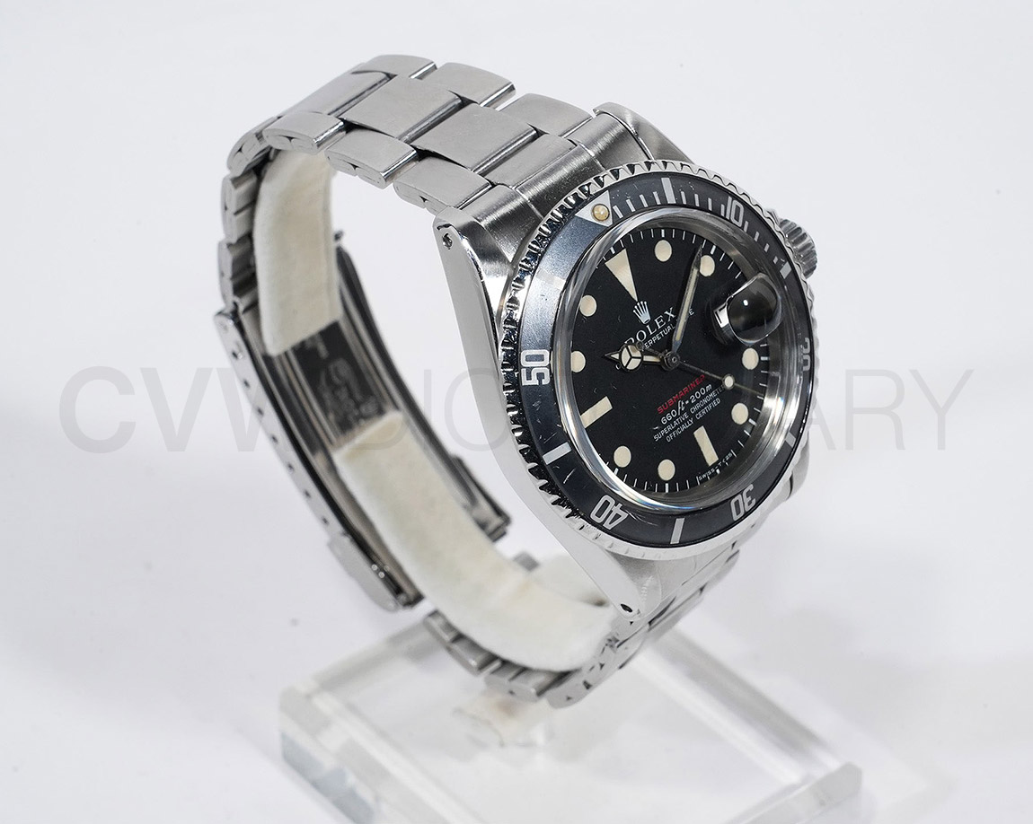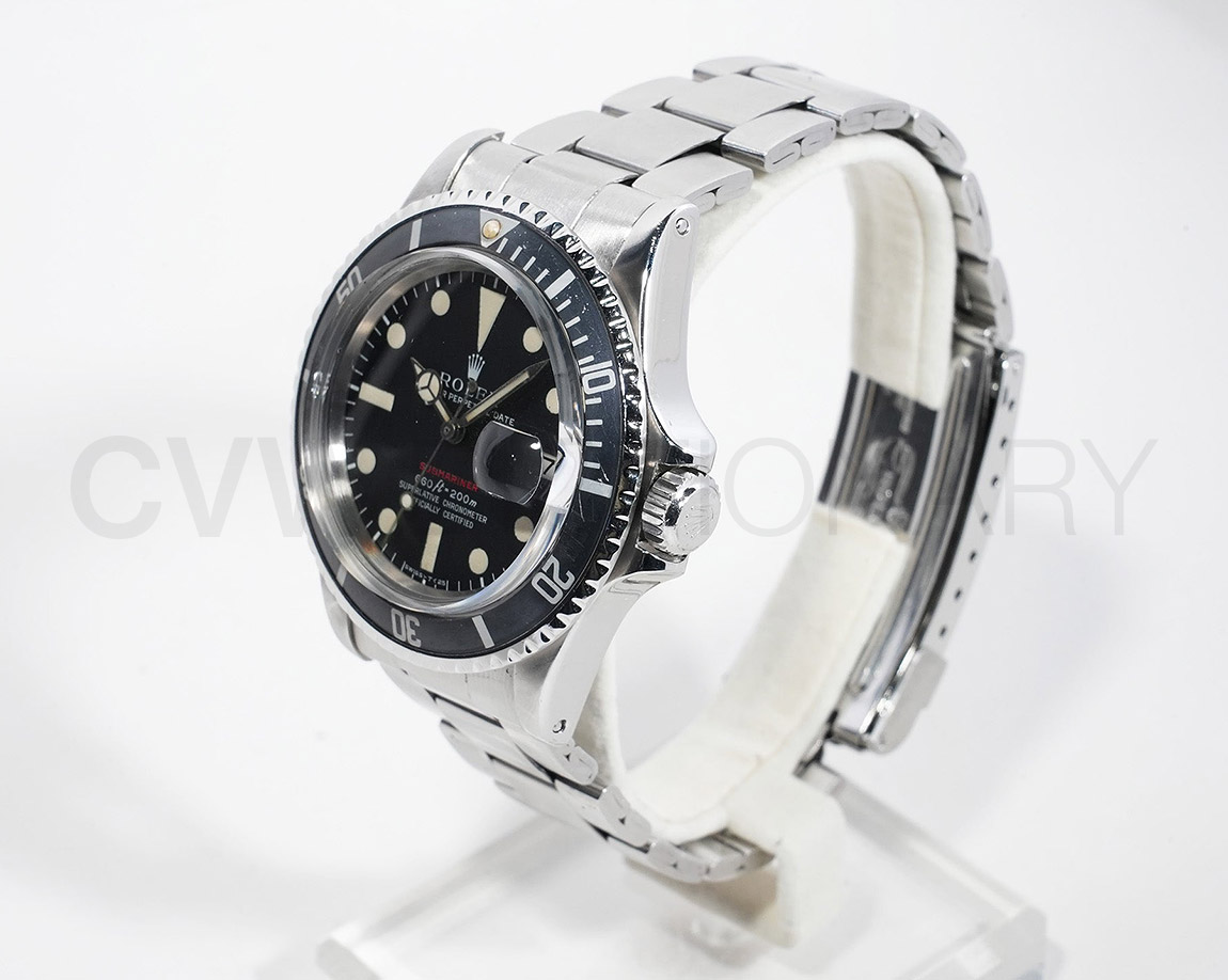 年代相応のスレ、キズがございますが、ケースはしっかりとした個体です。年代の合ったMK4ダイヤルのコンディションは非常に良くルーペレベルで綺麗な状態を維持しており夜光コンディションも良いです。整合性の取れた巻きブレスブレスは凹み、ヨレがございますが、顔が良いオススメ赤サブマリーナーになりますのでお探しの方は是非ご検討下さい。弊社提携工房にてオーバーホール済みの商品になります。
