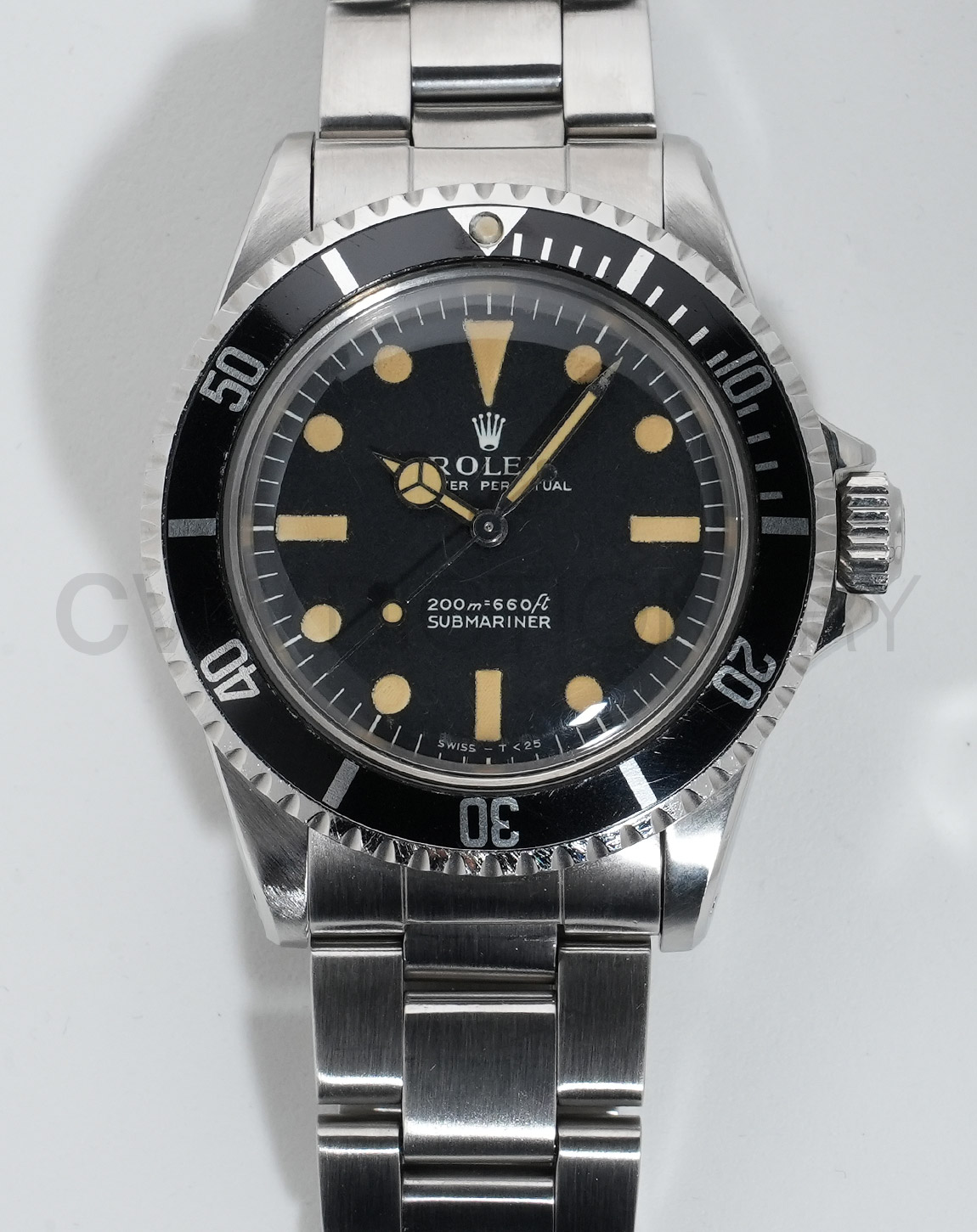 年代相応のスレキズがございますが、ケースがしっかりとした印象のいい個体です。Ref.5513最終ダイヤルのMK5ダイヤルとなり、シミやキズ等無くダイヤルコンディションが良い状態が保たれております。ベゼルインサートはMK4で年代一致しており、ブレスレットもクラスプコード「H」で整合性が取れております。付属品は保証書・サブ冊子・イカリチェーンと充実しております。ケースコンディションも良く、迫力があり太くしっかりとしたラグ足はエッジがしっかり立っております。※ルミナスポイントは社外品になります。